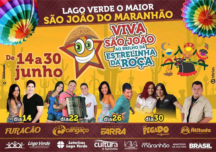 O evento ocorrerá durante os dias 14 a 30 de Junho no Arraial da Cidade, na praça José Reinaldo no Centro de Lago Verde. 5 (cinco) Bandas animarão os festejos juninos durante os 15 dias, são elas: Furacão dia 14, Cangaço dia 22, Forró de Farra dia 26, Forró Pegado e Banda Mais Atitude dia 30.